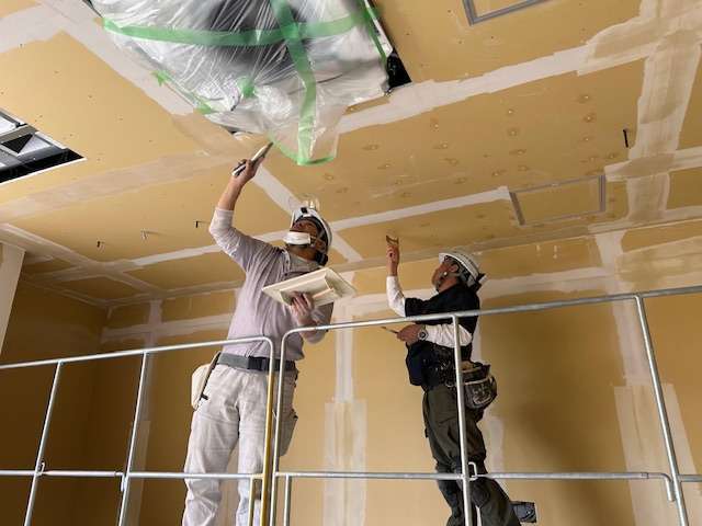 クロス(壁紙)を施工するための下地パテ処理を行ってます!